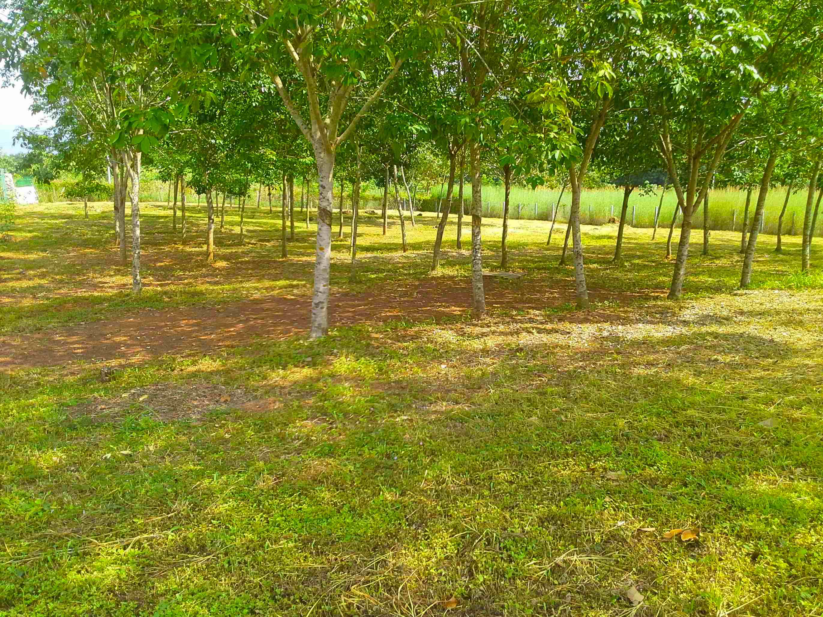 property cleared except for a few small stands of rubber trees for shade. ทรัพย์สินถูกเคลียร์ยกเว้นต้นยางเล็กๆ ไม่กี่ต้นเพื่อให้ร่มเงา